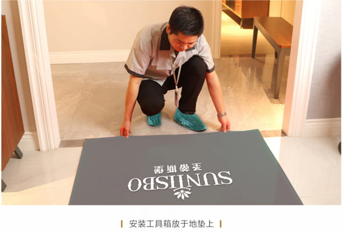 1、征得客戶同意后在客戶指定地點進行產(chǎn)品安裝,安裝過程中將提前準備好的小地毯/地墊放置于地上,安裝工具箱放于地墊上,不要在家具或地板上亂放,以免散落面板或地面上造成磨損。