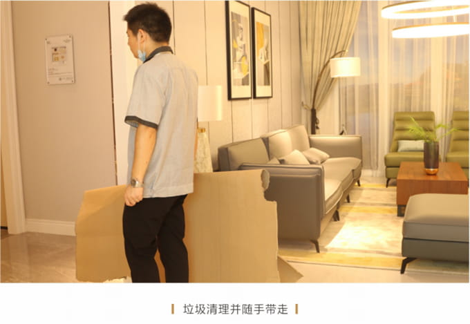戴上白手套,按顧客要求把貨物搬到指定位置,要求輕抬輕放,嚴禁在地板上拖、拉、推以免損傷顧客家物品。