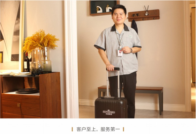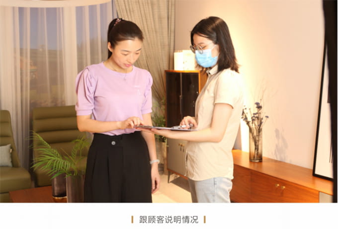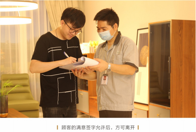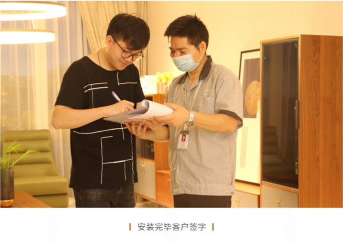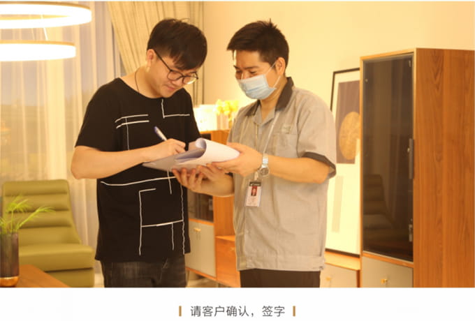 安裝并檢查完所有工作后,需與客戶清點并確認產(chǎn)品,將所有帶電源的家具插上電源,告知客戶家具使用方法和功能及保養(yǎng)知識、注意事項等。所有帶功能的產(chǎn)品需演示給客戶看。例: