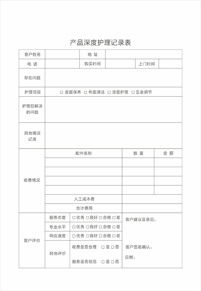按要求認真填寫服務記錄單據(jù)并請顧客填寫相應內(nèi)容及簽字,離開顧客處時除了與顧客本人告別外,還需要向有關(guān)負責人打招呼,詢問是否還有其他問題,當?shù)玫筋櫩偷臐M意允許后,方可離開。