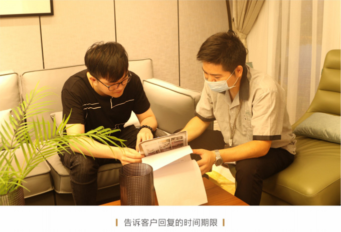 上門現(xiàn)場查看情況后,確定是補件或維修或返廠,并告知客戶大概需要多久時間能夠解決完問題并真誠地表示歉意。