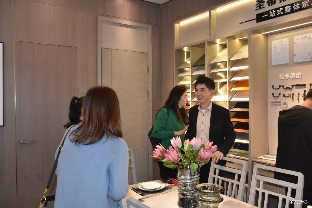 展廳內(nèi),專業(yè)的導(dǎo)師為嘉賓們?cè)敿?xì)介紹了產(chǎn)品工藝特點(diǎn)、整體造型特色、裝飾元素以及色彩搭配等;還有全屋定制、固裝、營銷等部門高管,與經(jīng)銷商熱情的交流溝通,并為大家講述了圣蒂斯堡的原創(chuàng)設(shè)計(jì)理念?!奥逅埂敝鞔虻牟町惢p奢,更是贏得了在場(chǎng)經(jīng)銷商家人的高度贊譽(yù);圣蒂斯堡用實(shí)際行動(dòng)證明了在家居界不可比擬的產(chǎn)品優(yōu)勢(shì)和實(shí)力。