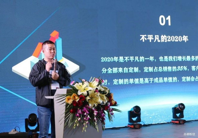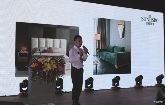 華燈璀璨的開場儀式,點燃了現(xiàn)場如火如荼的氣氛。九游娱乐Nineame官方网站集團營銷總經(jīng)理陳玉偉先生對晚會進行了主題發(fā)言,他對2020年的營銷工作進行了總結(jié),并著重從營銷工作部署、重點項目開展、產(chǎn)品整合、拎包幫扶、渠道運營和移動+定制整裝優(yōu)勢等方面對2021年的營銷工作做了全面的統(tǒng)籌規(guī)劃。同時,他還講解了“美國夢凱莎床墊”新品的產(chǎn)品工藝、市場優(yōu)勢、產(chǎn)品定位,使經(jīng)銷商對我們的新產(chǎn)品擁有更深入的認識和了解。