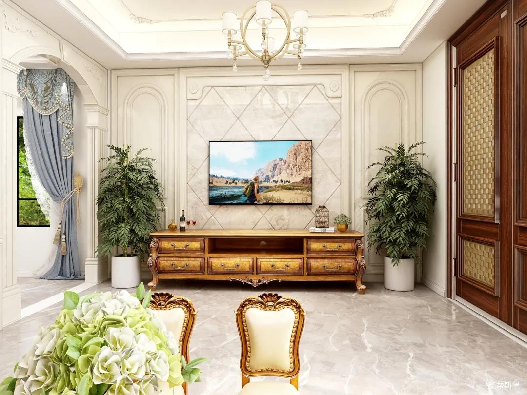 新古典風(fēng)格中填入少量的傳統(tǒng)裝飾,與美式和諧相融。精細(xì)的實(shí)木手工雕刻,傳統(tǒng)形狀的基礎(chǔ)韻味與美式的細(xì)節(jié)取長補(bǔ)短。不但富有審美的愉悅,更重要的是令居住舒適而貼近自然。背景墻更是復(fù)古與潮流的完美結(jié)合,具有經(jīng)典卻簡潔的圖案、復(fù)古卻時尚的色彩,既包含了古典風(fēng)格的文化底蘊(yùn),也體現(xiàn)了現(xiàn)代流行的元素。
