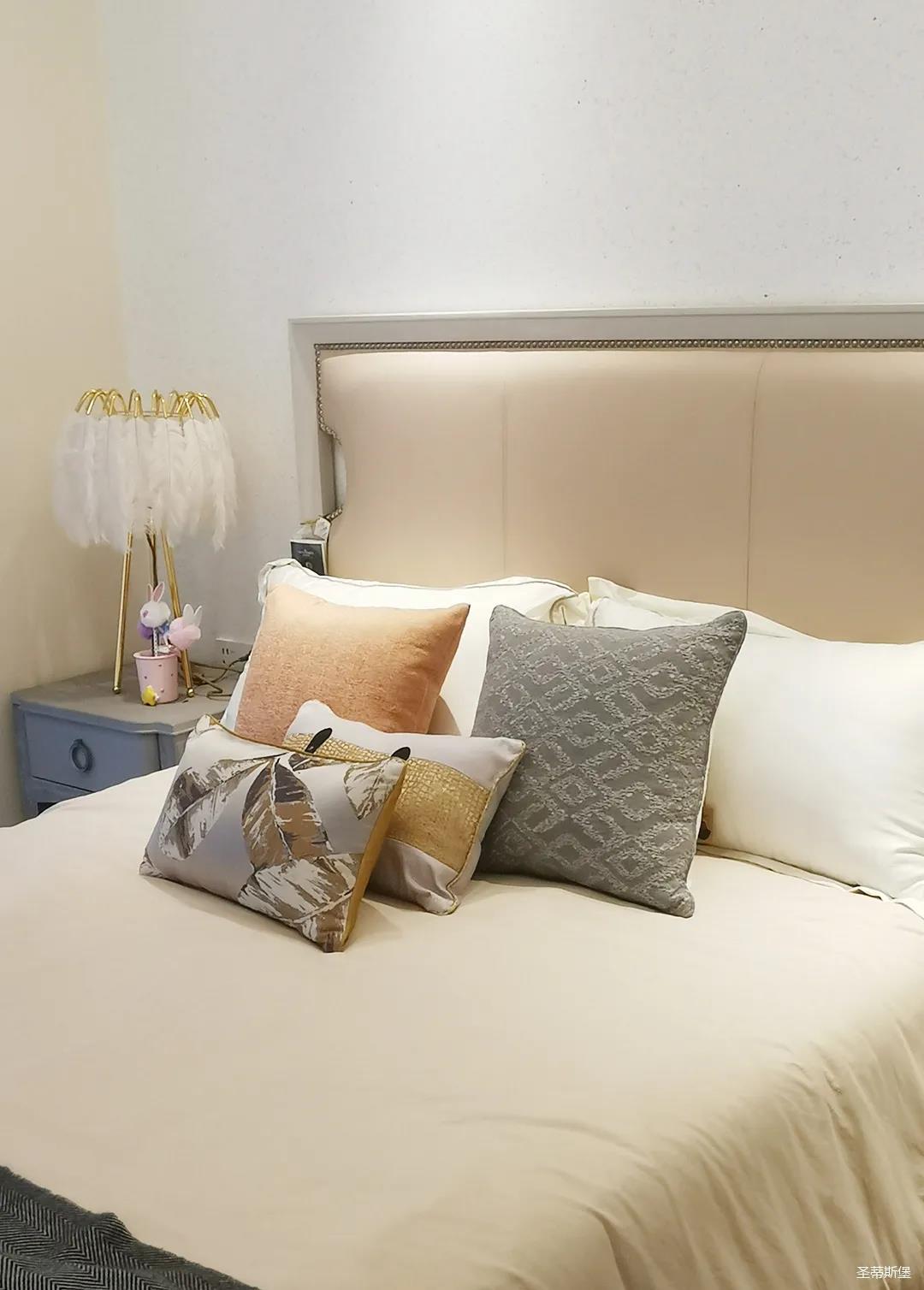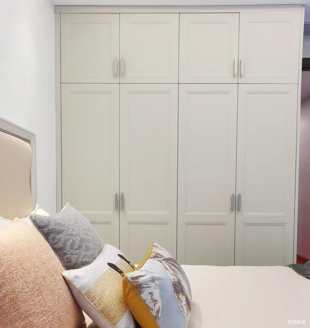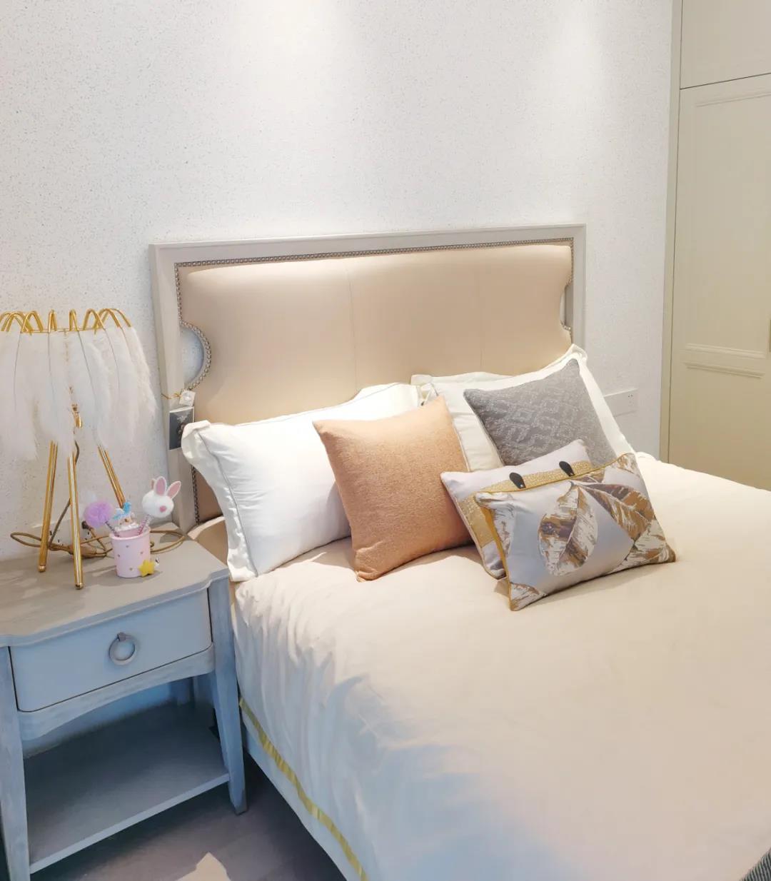 少女粉軟包床屏搭配仙氣十足的羽翼臺燈,讓空間顯得尤為夢幻。功能與顏值兼具的定制衣柜,與溫柔的空間相得益彰,簡單優(yōu)雅的同時也不失童趣。