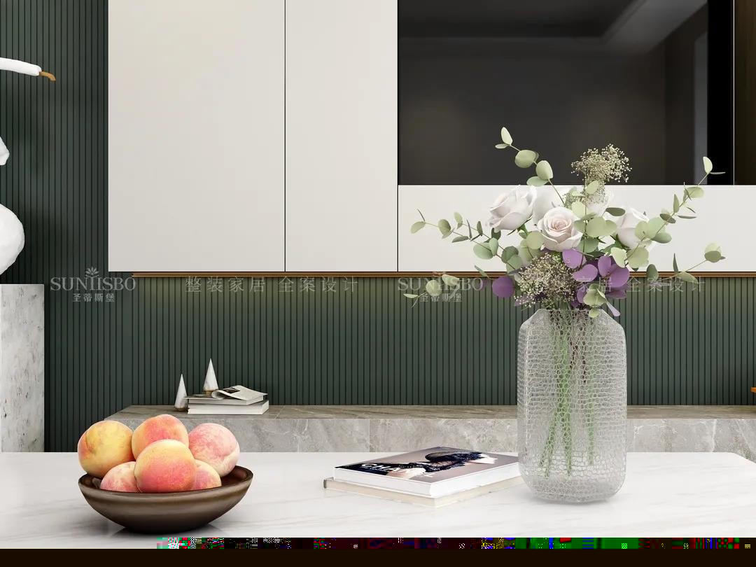 餐廳全開(kāi)放式的布局,遵循了家具收納的28原則,20%的封閉式儲(chǔ)納,收納不常用的雜亂物品,80%的半開(kāi)放設(shè)計(jì),展示軟裝飾物。餐邊柜將玻璃、金屬、實(shí)木材質(zhì)糅合分配,讓空間質(zhì)感倍增的同時(shí),也讓用餐空間多了一份家的溫度。