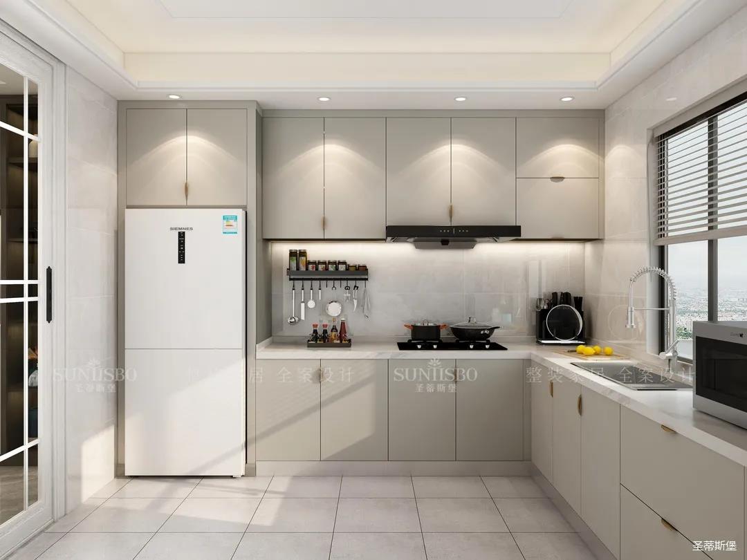客餐廳、廚房的極簡(jiǎn)風(fēng)格和諧統(tǒng)一,鑒于現(xiàn)代家庭中日益增加的廚房電器設(shè)備,設(shè)計(jì)師在用廚動(dòng)線(xiàn)上頗為用心,L型的動(dòng)線(xiàn)將生活習(xí)慣自然的融入整體家居之中。保持著中性簡(jiǎn)約的調(diào)性,運(yùn)用溫潤(rùn)的實(shí)木材質(zhì)與剛毅的線(xiàn)條,營(yíng)造出摩登時(shí)尚的氛圍。將廚房區(qū)域自然融入整體家居之中。保持著中性簡(jiǎn)約的調(diào)性,用溫潤(rùn)的原木材質(zhì)或是圓潤(rùn)的曲線(xiàn)線(xiàn)條,平衡空間的冷峻。