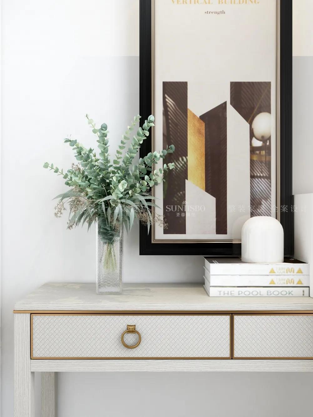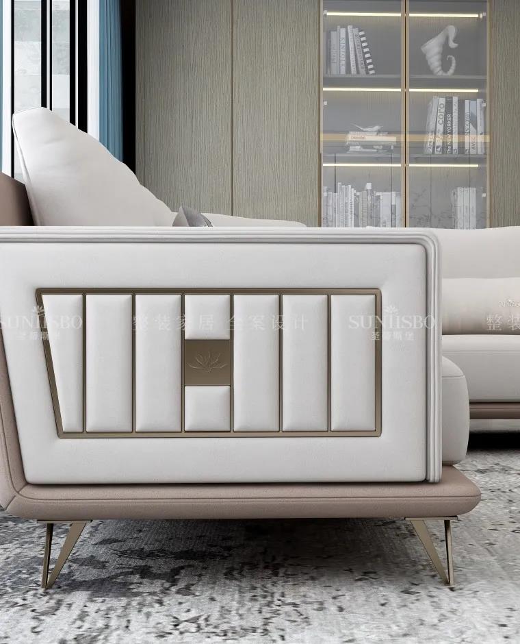 洛斯系列在現(xiàn)代時尚的基礎(chǔ)上還增加了許多輕奢的金屬元素,金屬元素在輕奢風里毋庸置疑的存在。為什么人喜歡戴耳環(huán)、戒指、項鏈等首飾?為什么衣服、鞋子、包包上都能看到金屬元素的身影?從時尚圈到家居界,金屬元素憑借其獨特的質(zhì)感以及由內(nèi)散發(fā)的高級氣質(zhì),有著強大的包容性,提升風格格調(diào),增添時尚氣息。運用在家居中可成為整個空間的亮點,成為時下家居裝修的潮流趨勢,深受大家的喜愛。但是目前市面上采用金屬鑲嵌工藝的多數(shù)是在板木結(jié)合的基礎(chǔ)上,難度相對簡單易操作。在洛斯系列里,是在實木的基礎(chǔ)上進行金屬鑲嵌工藝,要求精準度非常高,誤差不得超過0.5毫米,不然就會對不齊。在洛斯系列中,桌子的四角與腿部、柜類門板,沙發(fā)腿部,茶幾支架,餐桌臺面,床品外框等都將金屬恰到好處地融入到空間的每個角落,讓空間擁有輕奢的高級感,提升空間的質(zhì)感。將優(yōu)雅謙遜的都市精致感全面呈現(xiàn),讓裝修冷中帶暖、沉靜精致,也向人們展示了一種精致的生活方式,更為整個家注入靈動氣息。