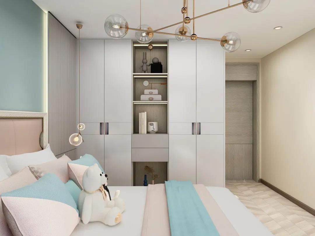 合理利用空間,這樣主臥便集臥室、衣帽間為一體,居住舒適度大大提升。營造了一個舒適度滿滿的私密空間。