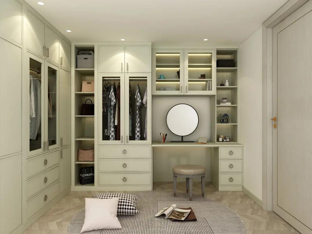 主臥衣帽間的衣柜結(jié)合妝臺(tái)一體設(shè)計(jì),