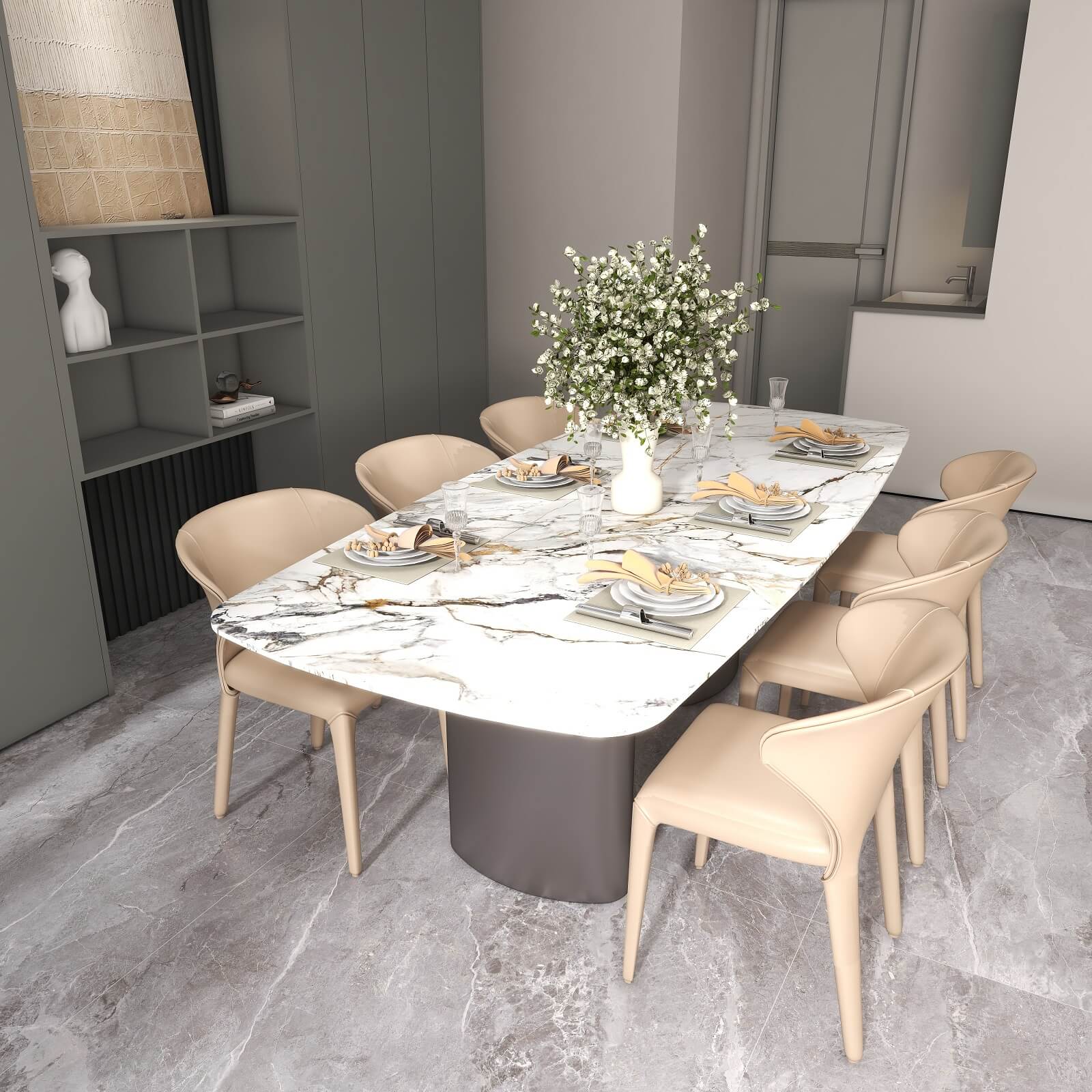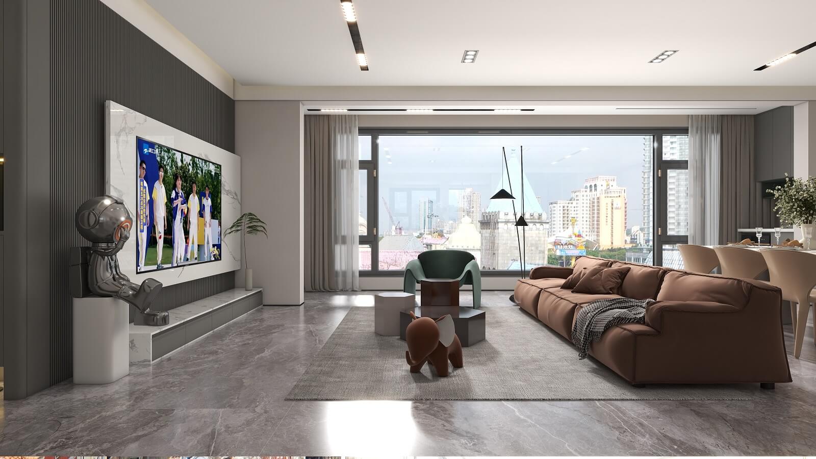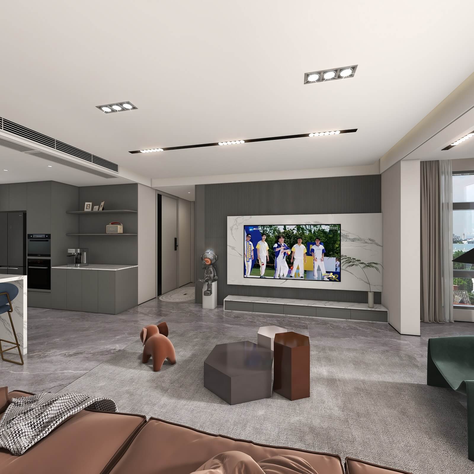 全面開放式格局,讓客餐廳之間相互聯(lián)動,毫無阻隔,在提升體驗(yàn)感的同時(shí),也增強(qiáng)了整體采光和通風(fēng)。